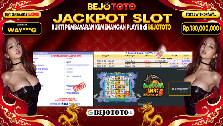 BEJOTOTO JACKPOT PRAGMATIC MAHJONG WINS 3 – BLACK SCATTER Rp.180,000,000,- LUNAS!!