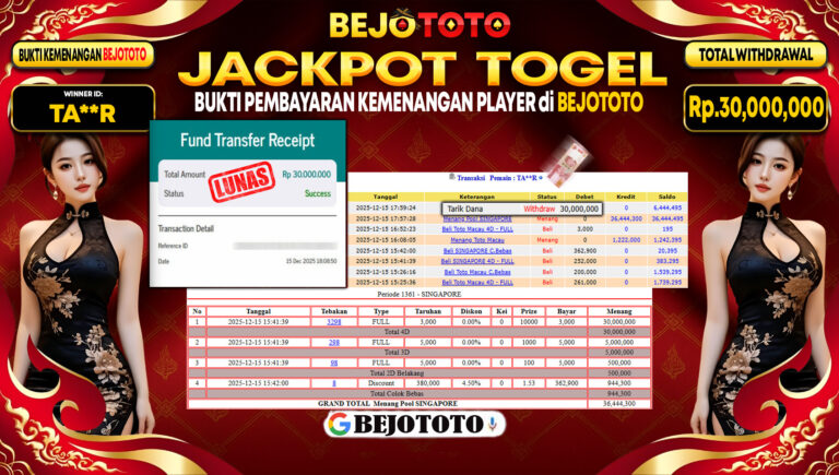 BEJOTOTO JACKPOT TOGEL SINGAPORE POOLS Rp.30,000,000,- LUNAS!!