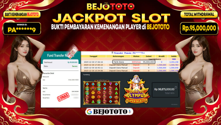 BEJOTOTO – Selamat kepada User id : PA******9 Telah berhasil mendapatkan kemenangan besar pada permainan SLOT PRAGMATIC GATES OF OLYMPUS SUPER SCATTER Dengan kemenangan Sebesar Rp.95,000,000,-. Setelah mengisi formulir withdraw dengan kurung waktu hanya 5 – 10 menit pihak BEJOTOTO sudah melakukan transfer kepada pemilik Userid dan dana sudah dapat di cairkan oleh pemenang. Bukti pembayaran yang kami berikan merupakan bukti…