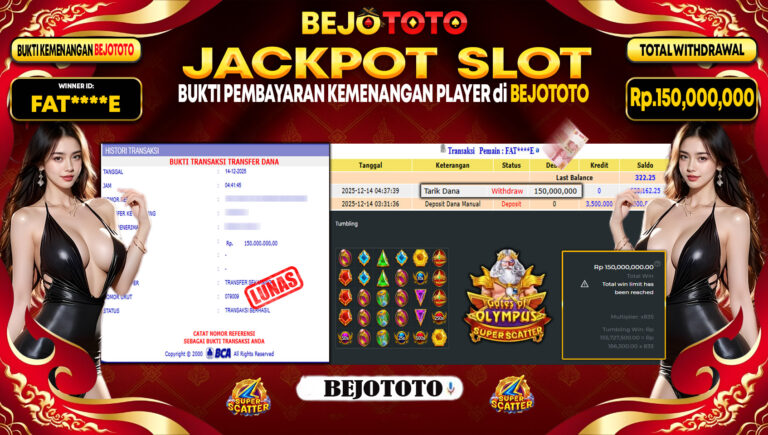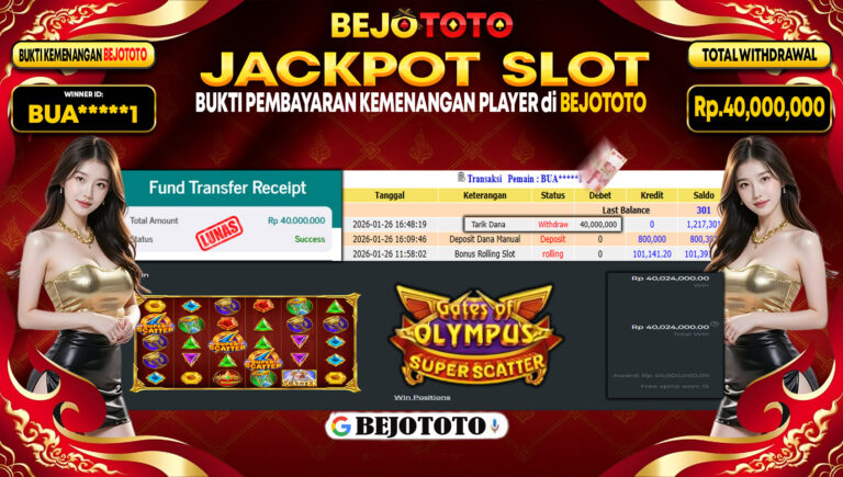 BEJOTOTO – Selamat kepada User id : FAT****E Telah berhasil mendapatkan kemenangan besar pada permainan SLOT PRAGMATIC GATES OF OLYMPUS SUPER SCATTER Dengan kemenangan Sebesar Rp.150,000,000,-. Setelah mengisi formulir withdraw dengan kurung waktu hanya 5 – 10 menit pihak BEJOTOTO sudah melakukan transfer kepada pemilik Userid dan dana sudah dapat di cairkan oleh pemenang. Bukti pembayaran yang kami berikan merupakan bukti…