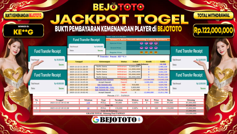 BEJOTOTO JACKPOT TOGEL TAIWAN Rp.122,000,000,- LUNAS!!
