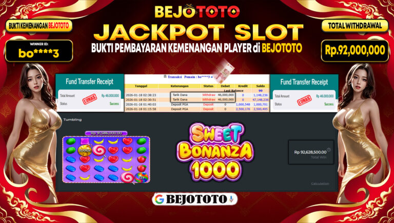 BEJOTOTO – Selamat kepada User id :HAM***A Telah berhasil mendapatkan kemenangan besar pada permainan SLOT PRAGMATIC PRAGMATIC SWEET BONANZA 1000 Dengan kemenangan Sebesar Rp.70,000,000,-. Setelah mengisi formulir withdraw dengan kurung waktu hanya 5 – 10 menit pihak BEJOTOTO sudah melakukan transfer kepada pemilik Userid dan dana sudah dapat di cairkan oleh pemenang. Bukti pembayaran yang kami berikan merupakan bukti pembayaran…