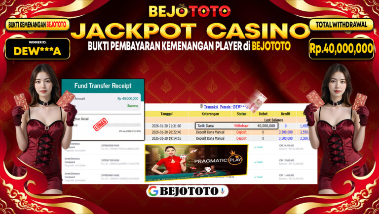 BEJOTOTO – Selamat kepada User id : DEW***A Telah berhasil mendapatkan kemenangan besar pada permainan LIVE CASINO PRAGMATIC SWEET BONANZA CANDYLAND Dengan kemenangan Sebesar Rp.40,000,000,-. Setelah mengisi formulir withdraw dengan kurung waktu hanya 5 – 10 menit pihak BEJOTOTO sudah melakukan transfer kepada pemilik Userid dan dana sudah dapat di cairkan oleh pemenang. Bukti pembayaran yang kami berikan merupakan bukti…