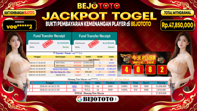 BEJOTOTO JACKPOT TOGEL TOTOMACAU 4D Rp.47,850,000,- LUNAS!!