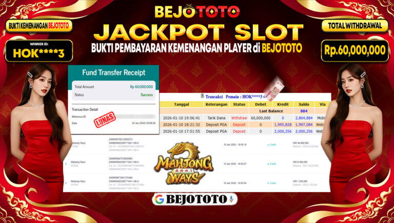 BEJOTOTO JACKPOT SLOT MAHJONG WAYS Rp.60,000,000- LUNAS!!