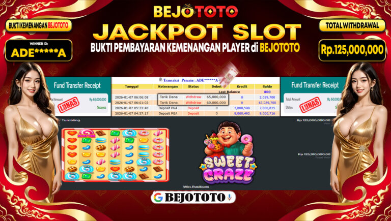 BEJOTOTO – Selamat kepada User id : ADE******A Telah berhasil mendapatkan kemenangan besar pada permainan SLOT PRAGMATIC SWEET CRAZE Dengan kemenangan Sebesar Rp.125,000,000,-. Setelah mengisi formulir withdraw dengan kurung waktu hanya 5 – 10 menit pihak BEJOTOTO sudah melakukan transfer kepada pemilik Userid dan dana sudah dapat di cairkan oleh pemenang. Bukti pembayaran yang kami berikan merupakan bukti pembayaran yang SAH…
