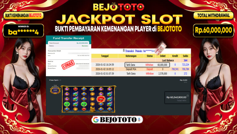 BEJOTOTO – Selamat kepada User id : PR*****9 Telah berhasil mendapatkan kemenangan besar pada permainan SLOT PRAGMATIC GATES OF OLYMPUS X-MAS 1000 Dengan kemenangan Sebesar Rp.60,000,000,-. Setelah mengisi formulir withdraw dengan kurung waktu hanya 5 – 10 menit pihak BEJOTOTO sudah melakukan transfer kepada pemilik Userid dan dana sudah dapat di cairkan oleh pemenang. Bukti pembayaran yang kami berikan merupakan bukti…