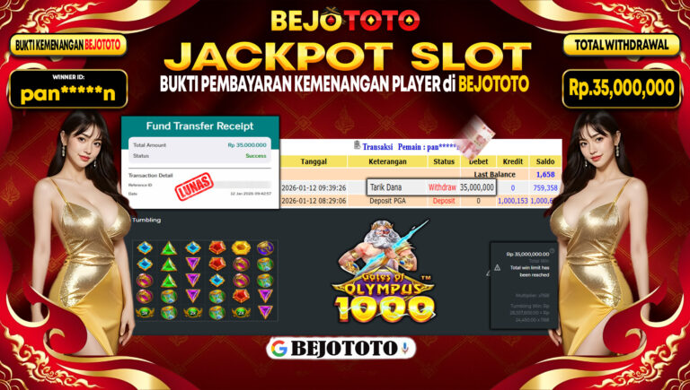 BEJOTOTO JACKPOT SLOT PRAGMATIC GATES OF OLYMPUS 1000 Rp.35,000,000,- LUNAS!!