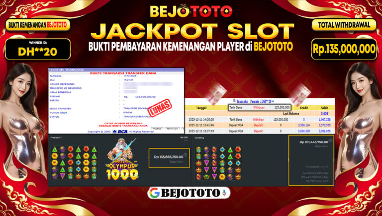 BEJOTOTO JACKPOT SLOT PRAGMATIC GATES OF OLYMPUS 1000 Rp.135,000,000,- LUNAS!!