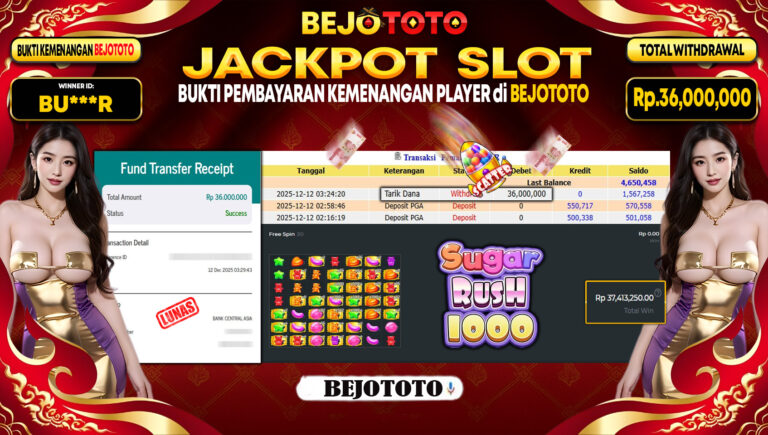 BOBATOTO – Selamat kepada User id : BU***R Telah berhasil mendapatkan kemenangan besar pada permainan SLOT PRAGMATIC SUGAR RUSH 1000 Dengan kemenangan Sebesar Rp.36,000,000,-. Setelah mengisi formulir withdraw dengan kurung waktu hanya 5 – 10 menit pihak BEJOTOTO sudah melakukan transfer kepada pemilik Userid dan dana sudah dapat di cairkan oleh pemenang. Bukti pembayaran yang kami berikan merupakan bukti pembayaran yang SAH…