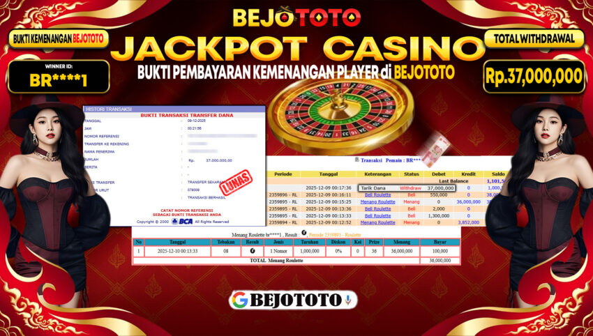 BEJOTOTO – Selamat kepada User id : BR****1 Telah berhasil mendapatkan kemenangan besar pada permainan LIVE CASINO ROULETTE GAMES Dengan kemenangan Sebesar Rp.37,000,000,-. Setelah mengisi formulir withdraw dengan kurung waktu hanya 5 – 10 menit pihak BEJOTOTO sudah melakukan transfer kepada pemilik Userid dan dana sudah dapat di cairkan oleh pemenang. Bukti pembayaran yang kami berikan merupakan bukti pembayaran yang SAH / VALID yang langung di dapatkan melaui tanda transfer transaksi dari Bank yang di tuju.