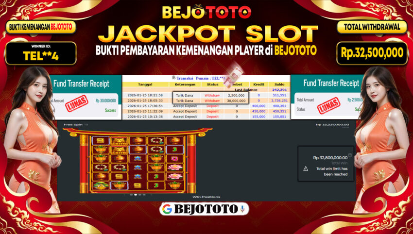 BEJOTOTO – Selamat kepada User id : bo****3 Telah berhasil mendapatkan kemenangan besar pada permainan  SLOT PRAGMATIC PRAGMATIC DRAGON TIGER FORTUNES Dengan kemenangan Sebesar Rp.32,500,000,-. Setelah mengisi formulir withdraw dengan kurung waktu hanya 5 – 10 menit pihak BEJOTOTO sudah melakukan transfer kepada pemilik Userid dan dana sudah dapat di cairkan oleh pemenang. Bukti pembayaran yang kami berikan merupakan bukti pembayaran yang SAH / VALID yang langung di dapatkan melaui tanda transfer transaksi dari Bank yang di tuju.