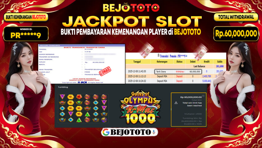 BEJOTOTO – Selamat kepada User id : PR*****9 Telah berhasil mendapatkan kemenangan besar pada permainan SLOT PRAGMATIC GATES OF OLYMPUS X-MAS 1000 Dengan kemenangan Sebesar Rp.60,000,000,-. Setelah mengisi formulir withdraw dengan kurung waktu hanya 5 – 10 menit pihak BEJOTOTO sudah melakukan transfer kepada pemilik Userid dan dana sudah dapat di cairkan oleh pemenang. Bukti pembayaran yang kami berikan merupakan bukti pembayaran yang SAH / VALID yang langung di dapatkan melaui tanda transfer transaksi dari Bank yang di tuju.